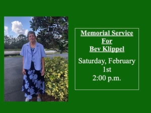Please come join us in celebrating the life of Bev Klippel at the Unity of Sebring Life Enrichment Center